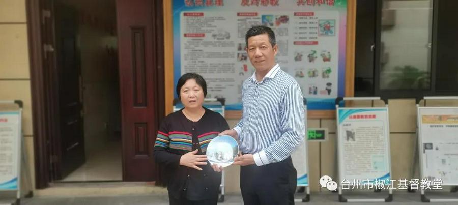 2020年9月23日上午, 浙江湖州安吉县基督教三自爱国会主席、安吉基督教堂负责人刘福珍牧师一行来椒江基督教堂参观交通,椒江堂负责人孔爱卿教师、堂委执事王攀盼、叶畏兵、吴伟强、陈昌明参加接待座谈交通,增进双方同工的沟通和了解,加强双方教会的友好联系,建立彼此代祷的祭坛。