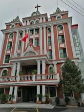 今天的绿化堂,国旗高扬,大屏幕显示着信徒的赞美诗歌和以往秋成感恩节的优美舞姿。服务组的同工们早晨五点半钟即到教堂按照安排各就各位;信徒们早早来到教会,一派节日喜乐的气氛。袁明牧师等教牧同工在教堂正门迎接前来参加庆典活动的信徒,彼此问候,洋溢着恩主的慈爱与和睦。