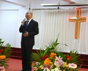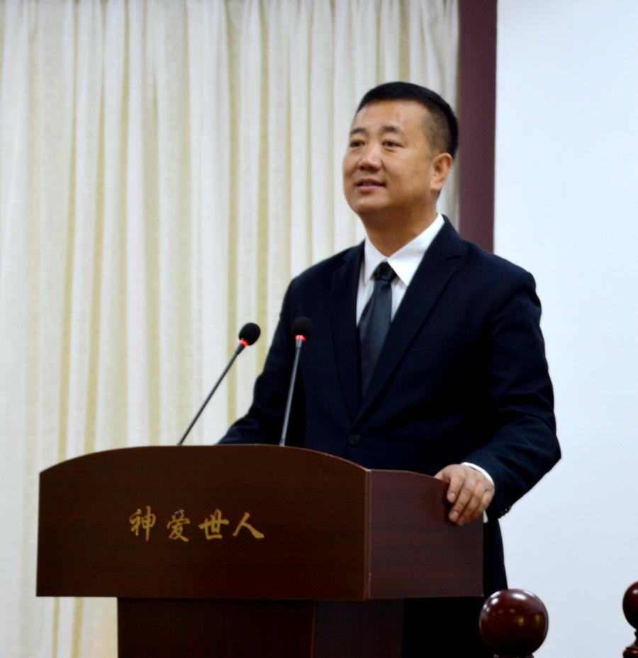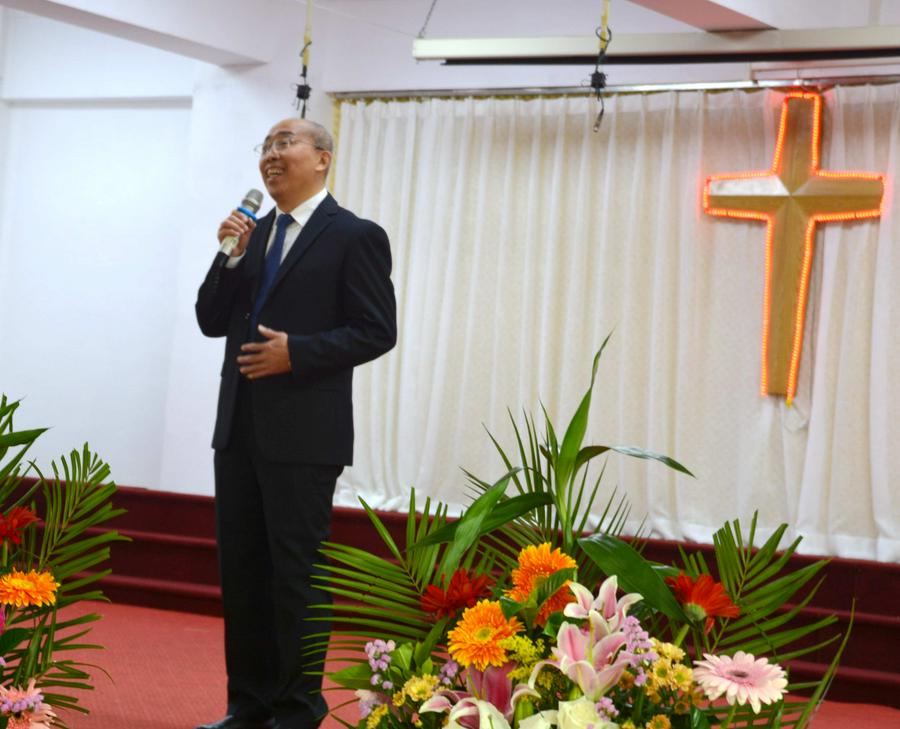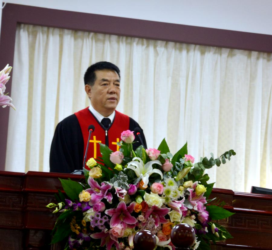 辽宁省基督教三自爱国运动委员会主席史爱军长老身着圣服,走到圣台问候弟兄姊妹平安。他带领会众诵读新约圣经路加福音17章11-19节的经文,从主耶稣基督为十个长大麻风的医治之后只有一个撒玛利亚人回来感谢主恩,耶稣说:“洁净了的不是十个人吗?那九个在哪里呢?”通过这个主的神迹和圣训,说明我们其中也有不知道感恩的信徒。为此,史爱军长老以《要有感恩的心》为讲章的题目,为主证道。他强调:不管遇到什么环境都要感谢上帝,要学会凡事谢恩、凡事赞美、凡事祷告。上帝就在我们身边,一定要相信主耶稣的存在,学会感恩,就什么也不缺乏。事事感恩、时时感恩,才能幸福喜乐,要把一切感谢都归给三一的神。