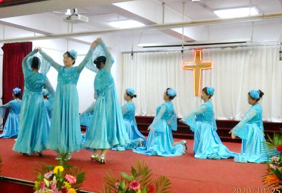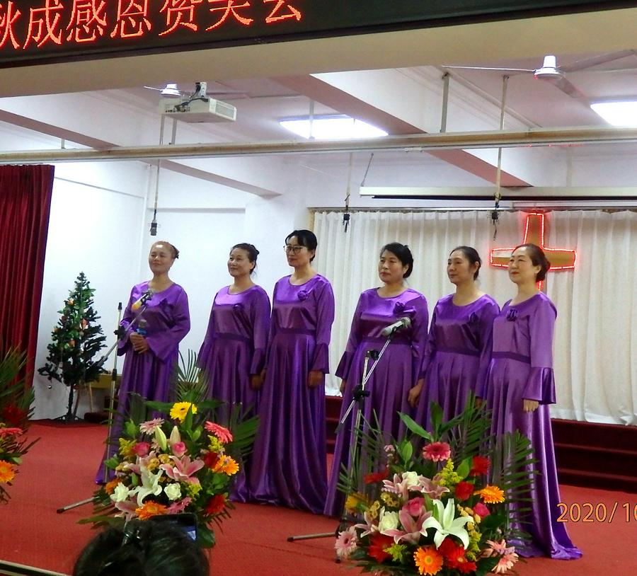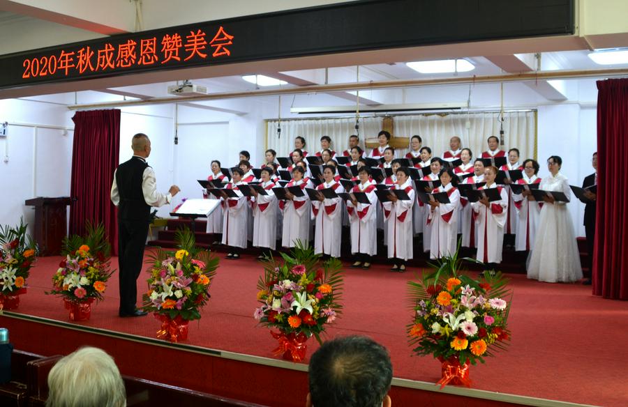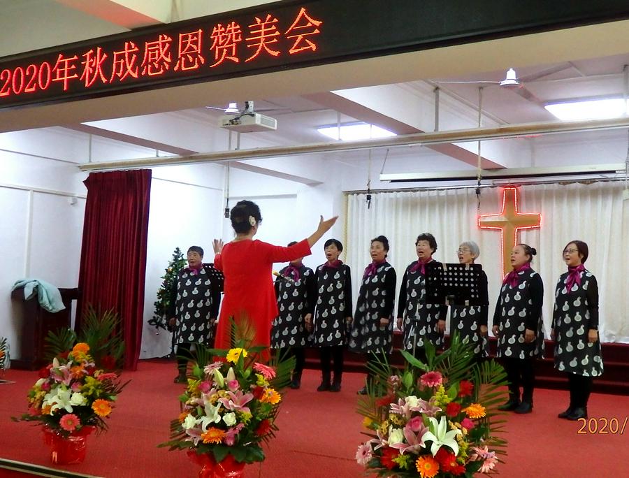 在感恩的欢庆高潮中,袁明牧师带领诗班与现场的会众一起,随着音乐的节奏拍手高歌,感谢、赞美主。绿化街教会的2020年秋成感恩赞美会,圆满落下帷幕。