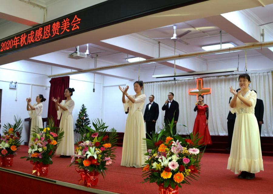 在晚场的主日礼拜中,绿化街教会也同样举行秋成感恩赞美会。