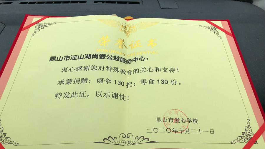 2020年10月21日,昆山市尚爱公益服务中心何春英主任一行4人来到昆山市爱心学校开展“爱心捐赠”活动。昆山市爱心学校卞卫芳老师接待了大家。因疫情的原因,我们缩减了活动时间和参加人数。最后志愿者将准备的礼物送给了孩子们。