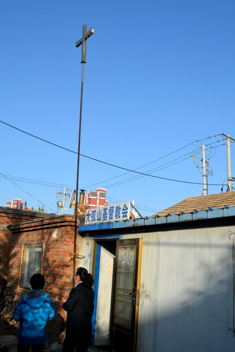 和繁华都市的高大上教堂比较,大孤山教堂只是在居民区的边缘几栋平房,没有那么富丽堂皇,舞台也是很小。但在高耸的十字架下,这里就是神的圣殿,这里有主的同在,这里有奉主名聚会敬拜的信徒,神喜悦祝福这殿。