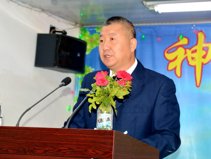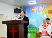 在诗班的颂赞声中,大孤山教会的负责人马连圣教士登上圣台,问候会众感恩节快乐,并为主证道。