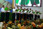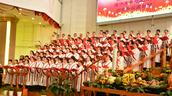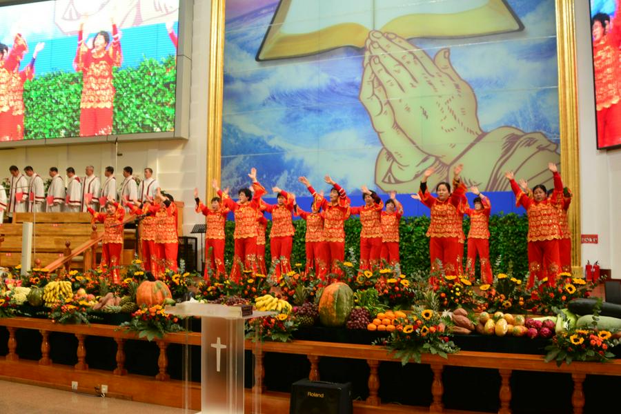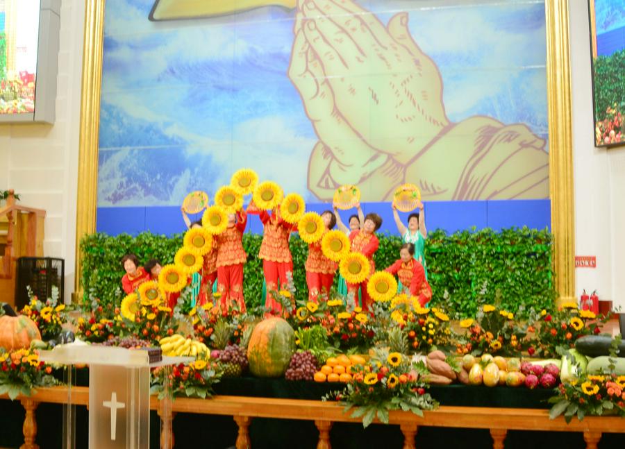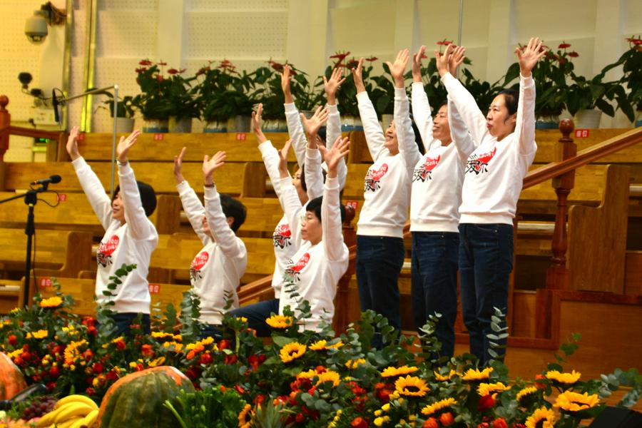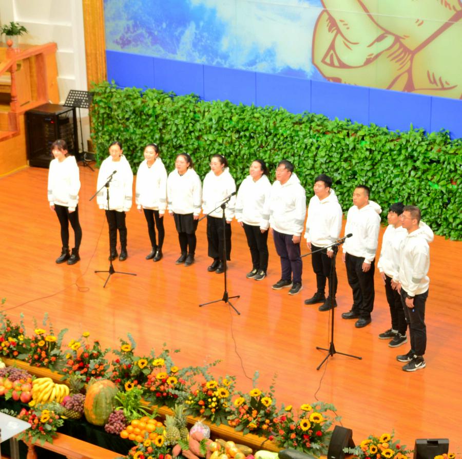 在近百人的联合诗班高歌大《哈利路亚》的雄壮赞美声中,丰收堂的2020年感恩节聚会活动拉开序幕。迦勒诗班的《感恩的泪》大合唱、哈利路亚诗班的舞蹈《全献上》、大卫诗班的律动《感恩我主》等合唱、独唱、舞蹈等十四个精彩缤纷的节目,如同一泓潺潺的细流,表达了对三一神的感恩。歌舞,如同感恩的祭献给上帝;赞美,如同一缕灿烂的阳光,照亮信徒的心扉。前来聚会的弟兄姊妹沉浸在主的恩典与看顾保守之中。