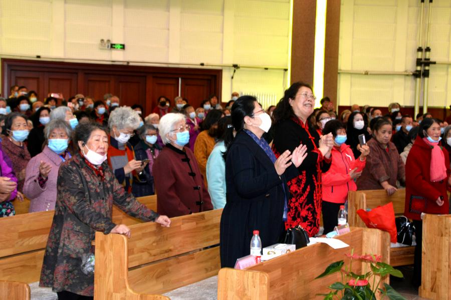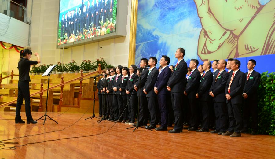 文艺演出接近尾声的时候,赵永刚牧师再次登上圣台,带领会众同声赞美。此时,全场起立,举起双手,齐声高唱,圣灵感动充满在这里。全体会众赞美达半个小时,歌声不断、掌声不断、高潮迭起,荣耀归给上帝。