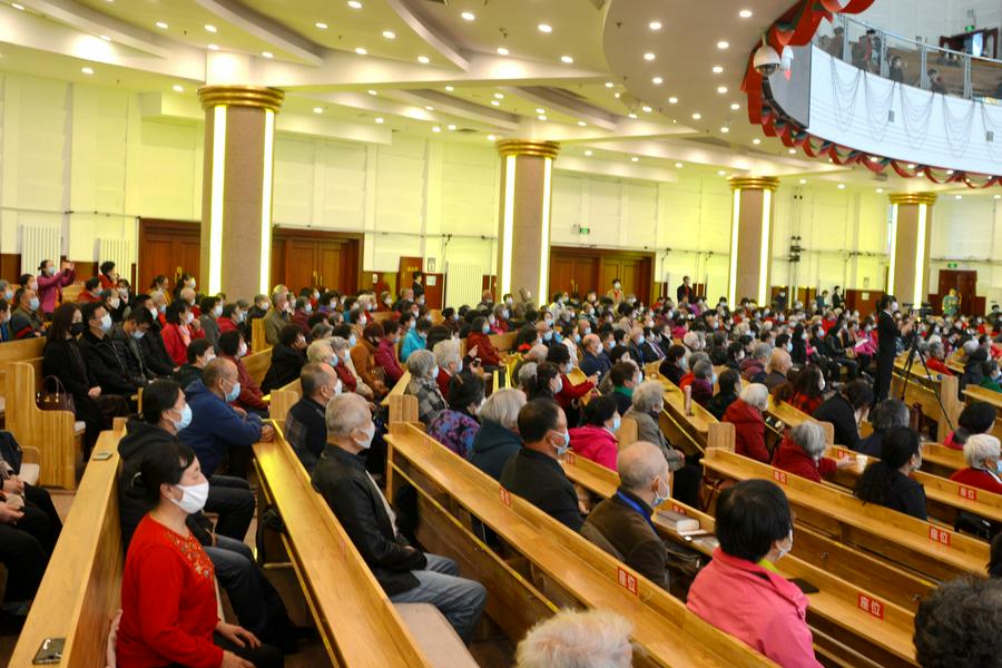 上午,经历两次疫情熬炼的丰收堂会众满怀喜乐和无限感恩之情来到教堂,接受防疫检测之后,有秩序地坐满了主堂楼上楼下,参加这自疫情以来最大的一次欢乐聚会。