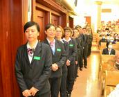 赵永刚牧师证道结束后,有八位弟兄姊妹在全场的热烈掌声和诗班的赞美声中走到圣台下,接受呼召,并在牧师的带领下向神做决志的祷告,成为归向主的新人,教会向他们赠送了圣经。