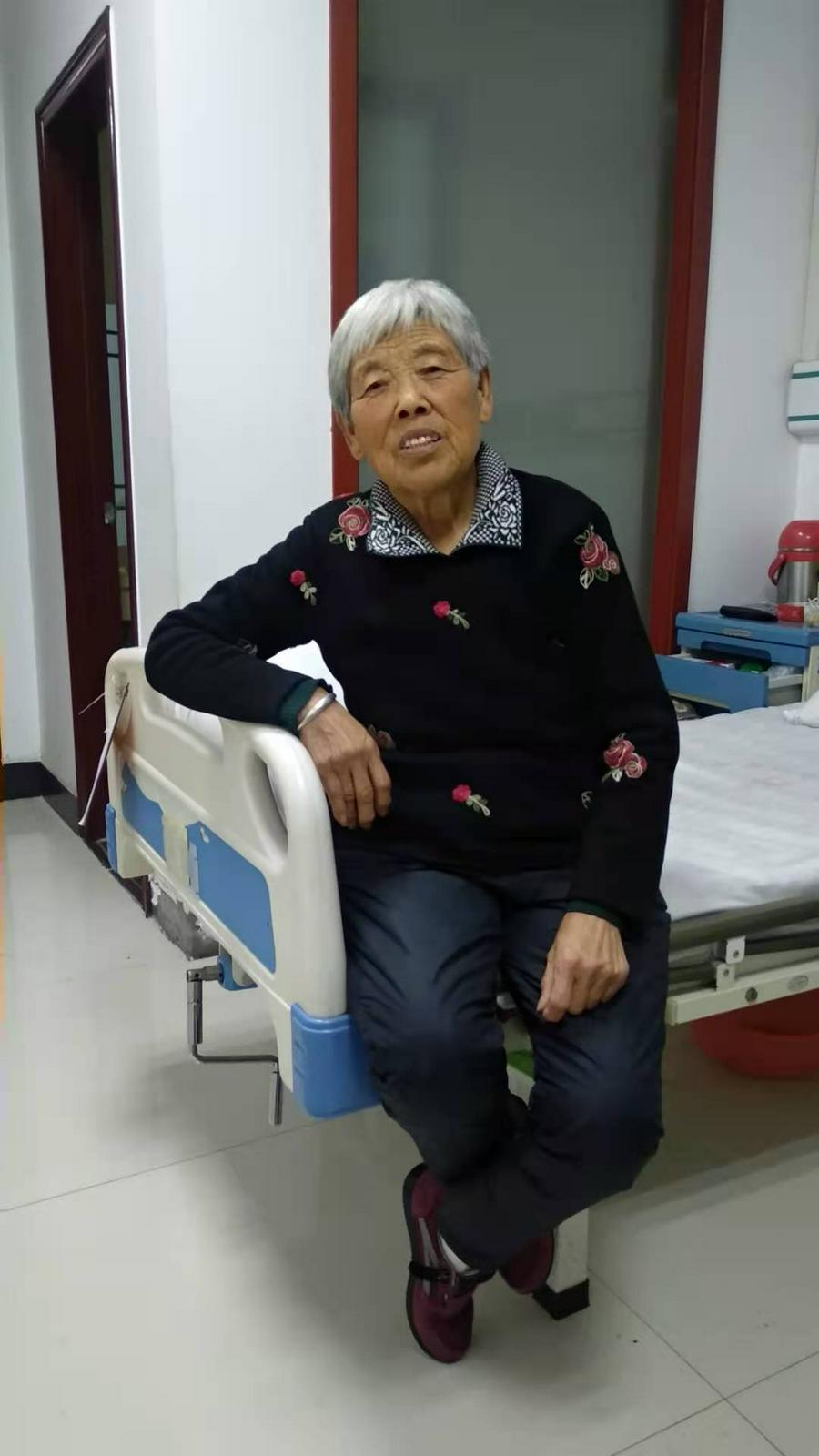 七十岁那年,天刚下过雨,从厕所出来一不小心滑倒了,大腿关节骨折了,她求告神,得到神的回应说:“我的恩典够你用的。”在随后的100多天里,她在养伤期间,把圣经完整地又读了一遍,原来神竟然以这样的方式让她学习灵修。后来又恢复行走自如了。