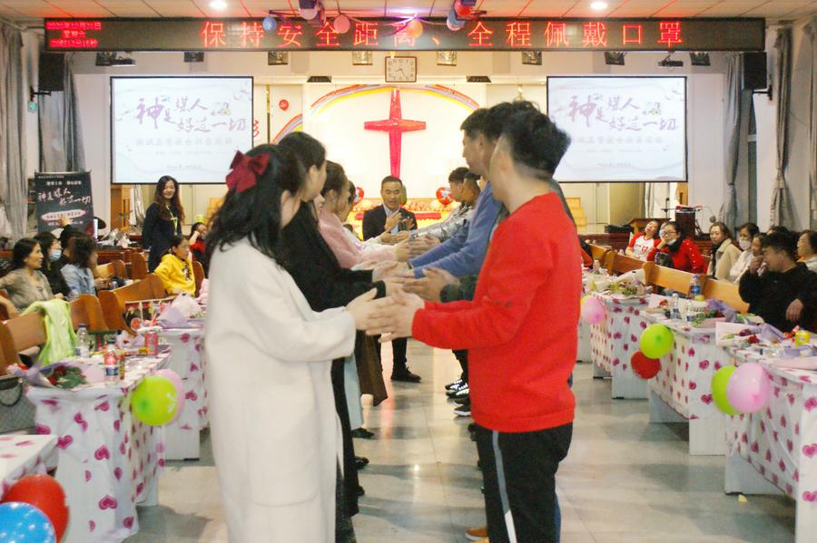 2020年10月31日,白城市多个教会在洮北区瑞光北基督教堂联合举办大龄青年相亲会,共有各区县教会的35位青年参加,100多位亲友临场助阵。