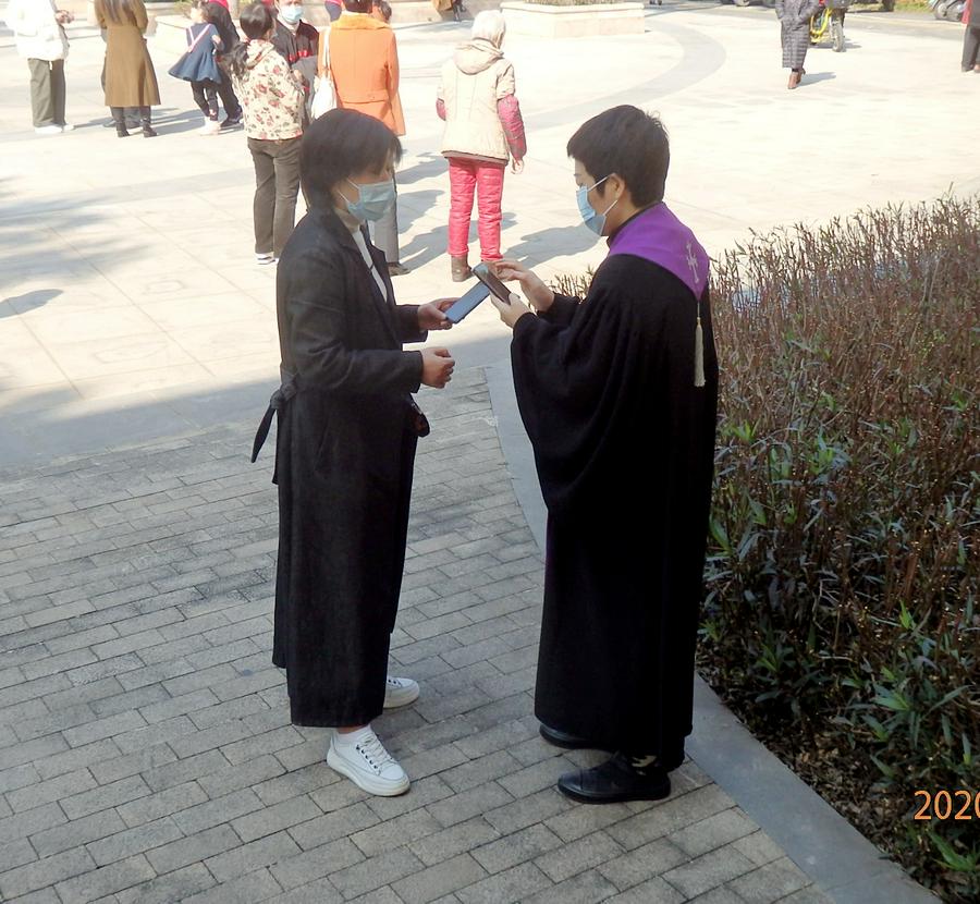 我看到,一位即将按立为牧师的传道人,同样要主持这个教堂在礼拜天一天的聚会活动,中间休息的时候,也是楼上楼下来回跑,安排各班组的事工,接待信众……这就是我们的牧者给人一种以一当十的感觉,每天都在忠心的辛苦的为上帝服侍,为信徒传福音。