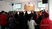 这间教会由于是一百多年的教堂,堂里建筑面积不大,容纳不了那么多的人。那么教会就把12月作为圣诞月,信徒分批次在教堂聚会。每个礼拜都在教堂庆祝圣诞节。而在第一个礼拜日,一位传道人在诗班敬拜赞美之后,在圣台前为主证道,仅仅用了十分钟的时间就把圣诞节的意义和主耶稣基督降临带给世人的救恩等讲的明明白白、清清楚楚。然后就开始了该场的圣诞节的欢庆活动。