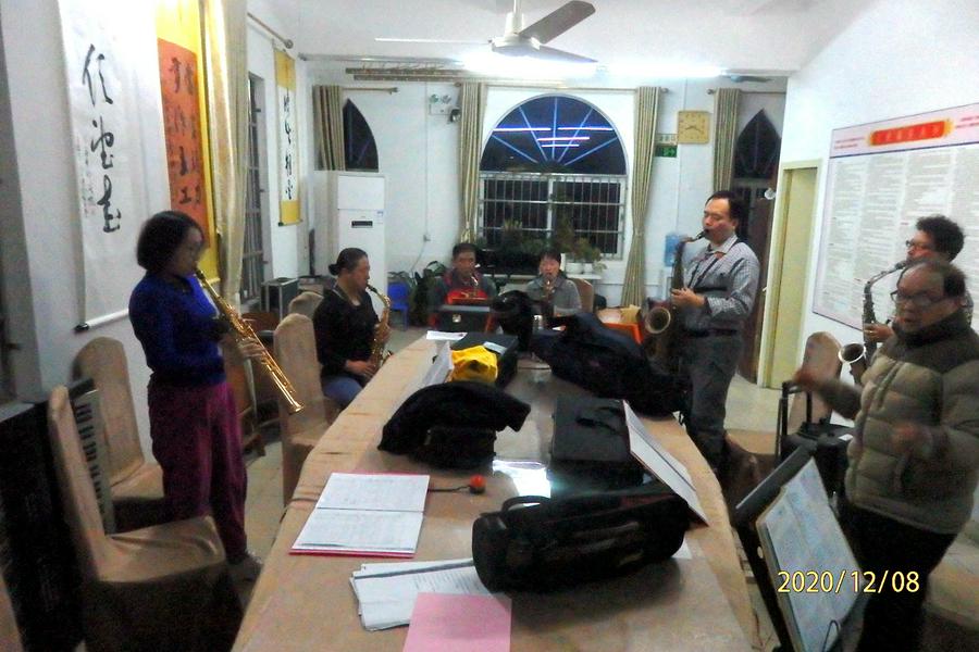 为了把更好的欢庆精品节目献给恩主基督,北海堂的弟兄姊妹从11月就开始每天晚上七点多钟到教堂排练。教堂规定是一个小时左右即可,可是大家热情非常高,往往都是到晚上九、十点钟才离开。他们当中有的是上班族、有的是中老年同工,但是弟兄姊妹非常主动积极参与排练和活动。笔者在教堂的主堂、办公室、班组活动室等处看到至少有三个班组在活动:萨克斯管乐在演奏、青年班在读经、查经、赞美,弟兄们在排练舞蹈,大家很认真的反反复复的在谈论、点评、排练。