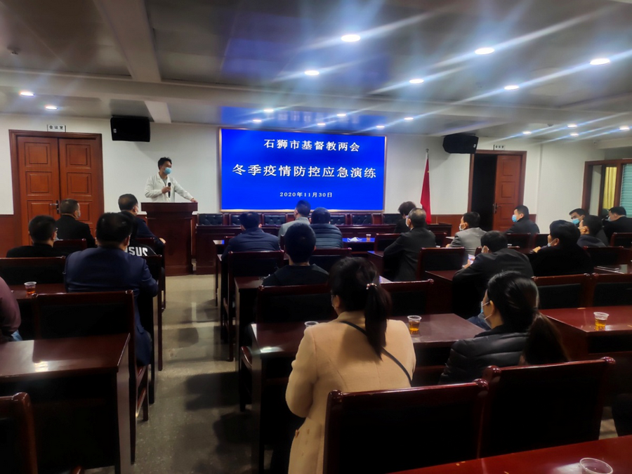 11月30日,石狮市基督教两会“严防境外渗透,防范异端邪教”培训会暨冬季疫情防控应急演练在石狮基督稿教堂举行。参加此次会议有市两会全委及各堂点主要负责人。石狮市民宗局赵轶股长莅会指导。