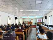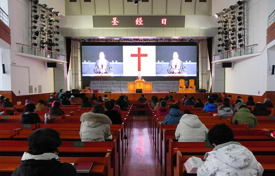 长春市绿园区皓月大路基督教堂在“圣经日”,王芳牧师带领信徒们一起读经,鼓励信徒“爱读经、勤读经、乐读经”。