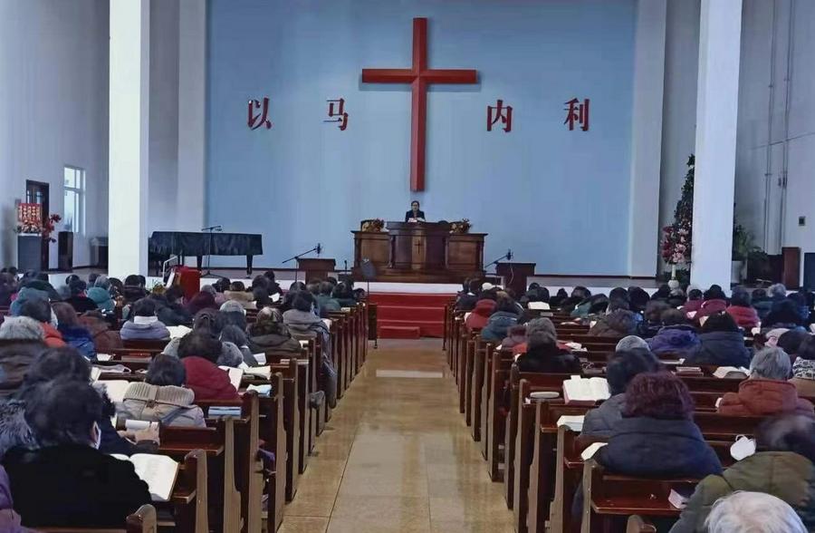 公主岭市范家屯基督教堂在“圣经日”组织集体读经活动。