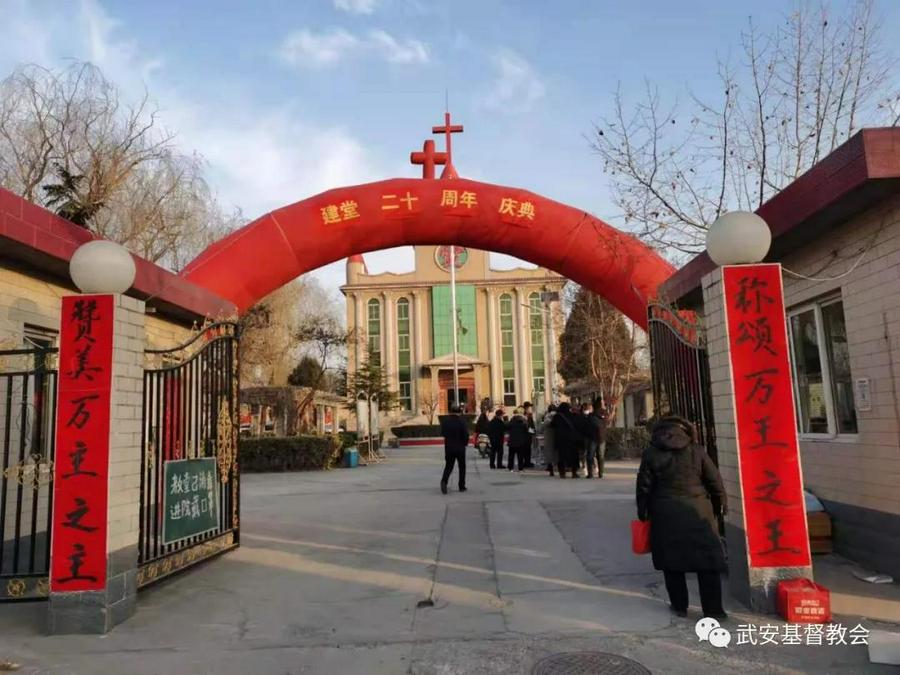 2020年12月5日,一片风和日丽,武安市基督教大教堂正在举行建堂20周年堂庆庆典活动,参加庆典的有各乡镇负责人,各教会负责人,圣职执事,各位弟兄姊妹。上午九时,在圣乐队的乐器伴奏中,诗班、牧师、长老进入堂内,上午举行了崇拜仪式,下午弟兄姊妹献上了赞美舞蹈。