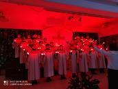 精彩:在悠扬的钟声中,全体会众高唱《以马内利来临歌》,圣诗班的同工们齐声高歌向主献唱。这是个中国化的平安夜晚会,除了一头一尾两首传统的圣诞诗,期间的都是中国圣诞诗。有关团契的弟兄姊妹身穿节日的盛装,手捧闪烁的烛光,神态端庄的由主堂后面缓缓走向圣台,赞美歌声高扬、嘹亮,把赞美呈献给三一的上帝,将感谢归给我们的主耶稣基督。