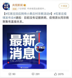 这几天,在微信、头条等自媒体上,有谣言称是因基督徒聚会引发河北疫情。造成很多非信徒对基督教产生误解。直到1月9日央视新闻发布信息,澄清谣言,指出没有证据证明疫情与宗教活动有关后,批判的声浪才逐渐淡化。