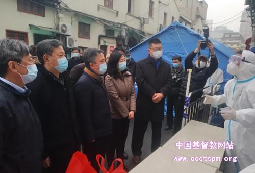 2021年2月1日下午,在上海市黄浦区委统战部和区民宗办的统筹协调下,中国基督教三自爱国运动委员会主席徐晓鸿牧师、中国基督教协会会长吴巍牧师、中国基督教三自爱国运动委员会驻会副主席阚保平牧师、秘书长顾梦飞同工一行冒雨前往上海市黄浦区贵西小区和昭通小区驻点,看望慰问参与小区封闭管理的街道社区干部、医务工作者、公安消防战士和志愿者,并捐赠慰问品。