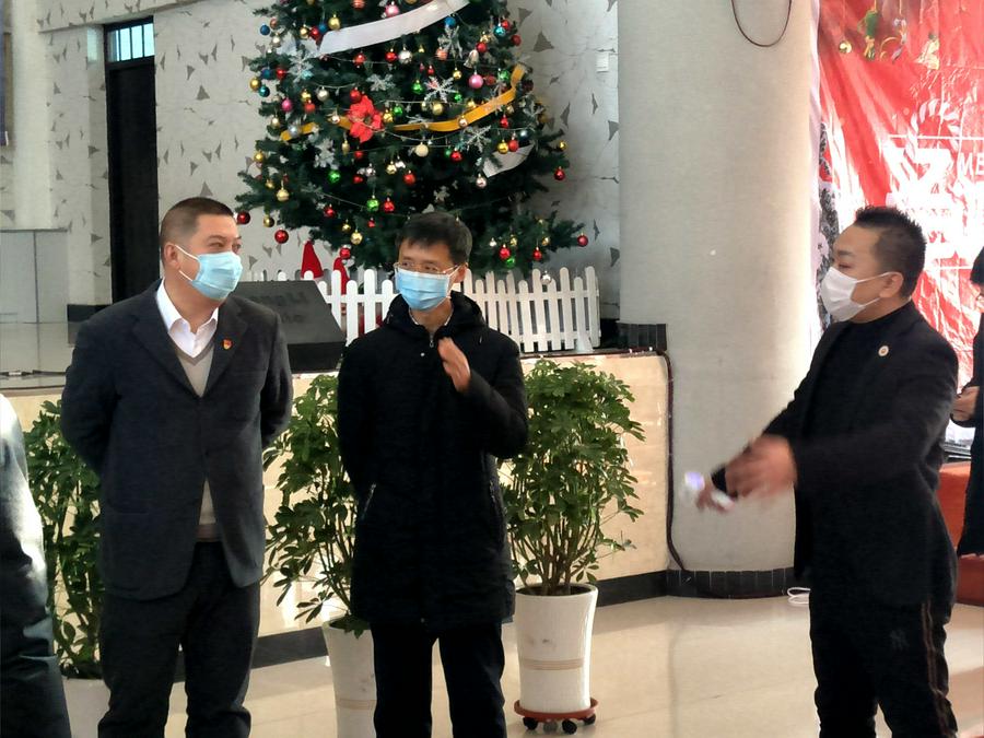 在东丰南站教会值班的佟冬教师的陪同下,前来的领导来到早已停止礼拜聚会的南站堂主堂及内外进行巡查走访,探访慰问了教堂守岗值班人员,给予鼓励并提出要求:针对来访人员的登记、扫码、体温测量、消杀等不容忽视,尽管教堂暂停聚会,安全排查是必要的。在听取了守岗人员的详细汇报中,领导们对教堂的防疫措施和工作给予肯定和表扬。