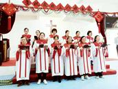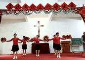 合浦欧志玲传道主持节目庆祝。姊妹们穿着节日的盛装登上圣台,为主献上感恩的歌舞欢庆自己的节日。庆祝会会场洋溢着基督里欢聚的福乐和喜悦。庆祝聚会结束后,大家一起感恩谢饭,分享爱宴。