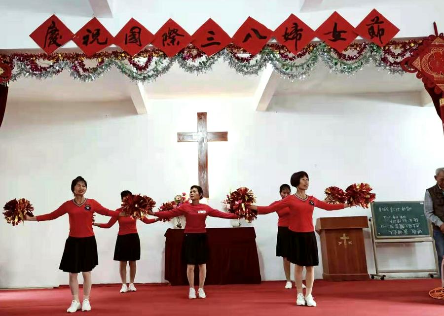2021年3月8日中午,在春光明媚之中,常乐礼拜堂的姊妹们兴高采烈地来到教堂的庆祝聚会现场。