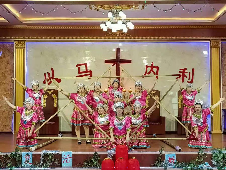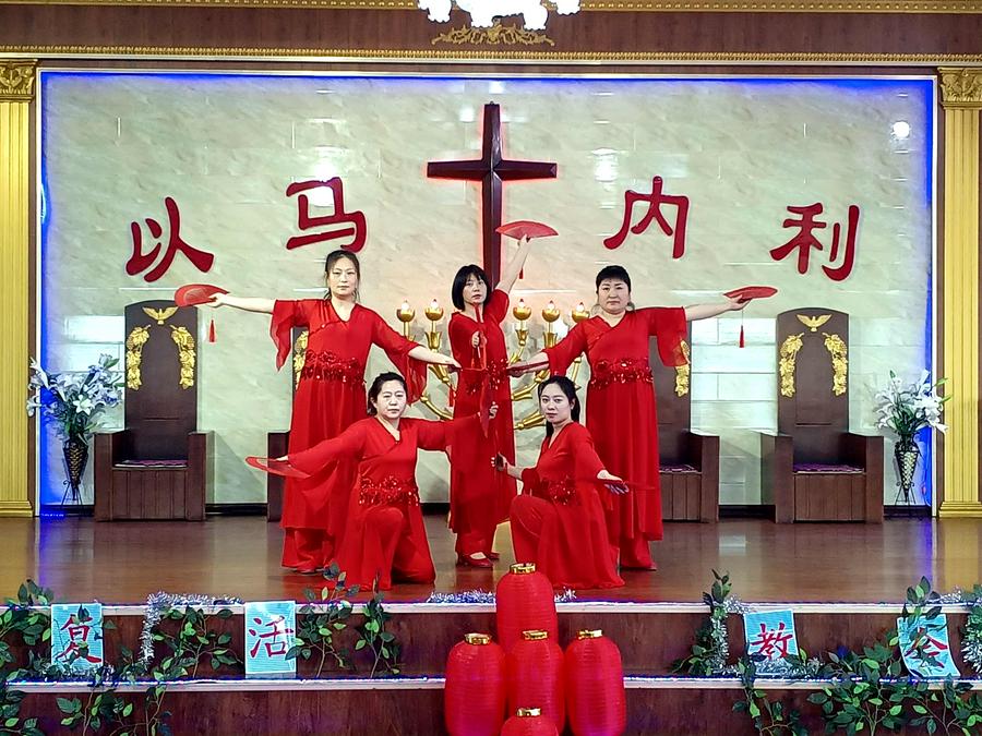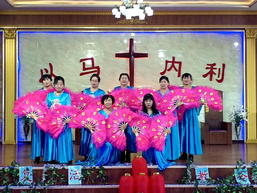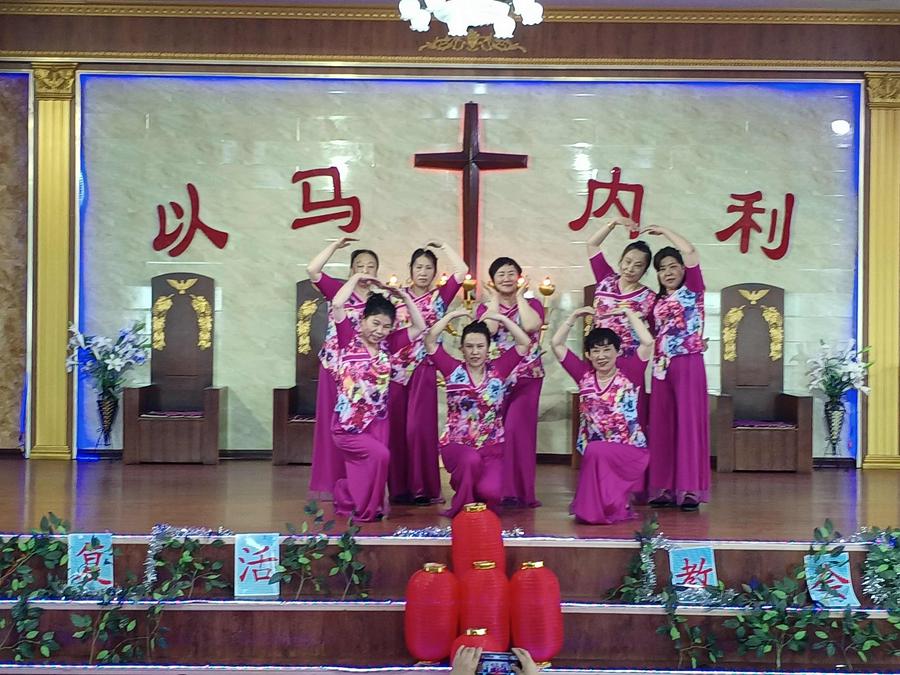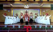 胜利堂彩排的现场,教堂的负责人、传道人、班组和团契的负责人既是演员又是观众。大家知道此时此刻主就在他们中间,笑脸观看。因此这场“没有观众”的彩排如同正式演出一样的虔诚、认真、喜乐、欢庆。圣殿中赞美的歌声嘹亮、奏乐声悠扬、舞姿翩翩、同心合意赞美主耶稣基督复活。这是他们记念主耶稣基督的复活、升天。感谢主耶稣为我们在十字架的救恩,所奉献的最好的礼物。