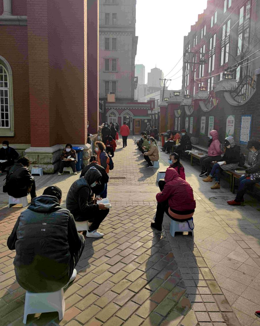 闻讯赶来聚会的弟兄姊妹迸发了极大的热情,可说是空前的火热:在教堂院外5点半钟就有信徒来了,排起了长队,安静、依次、顺服的等待进入堂里。因为防疫要求,室内的主堂、副堂座位按照间隔就坐,不能容纳更多的信徒。这也挡不住、难不住神的众儿女聚会的热情。于是,有的弟兄姊妹就坐在教堂外面的院内,参加聚会。当我们看到那站立做笔记的姊妹、那坐在院内读经的肢体、那坐在小凳子上互相交流读经的信徒,特别是那些老弟兄、老姊妹,来到奉献箱前,把自己的奉献、自己的心,献给慈悲的主,这种场景真的很感动人!
