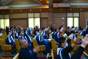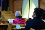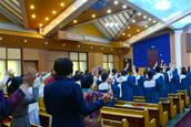 聚会现场赞美时全体热烈高歌、祷告时全体虔诚宣告、听道时不仅有的年轻人在做笔记,有的老年人也在认真做笔记。大家有时候还在牧师带领下互动祝福,聚会的场面圣灵充满、喜乐充满、福气充满。