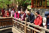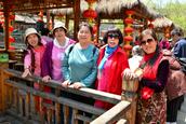 这一天,大家在包租的大客车上非常高兴和喜乐,唱起了赞美的歌声,欢声笑语不断。到了景点,大家有序的观赏锦鲤、看湖光秋色、赏山川美景、观鸟语花香、拍照片、走索道,登高远望,共聚爱筵午餐,赞叹、感谢上帝的恩典和创造。她们中间既有九十岁高龄的老姊妹、有腿脚不便的肢体、也有曾经做过大手术的同工,但是大家沿着预定好的平安旅游路线,互相帮助,互相爱护、集体行动,没有一人掉队,大家非常开心。