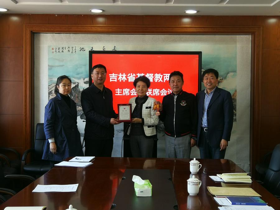 2021年5月11日,在吉林省基督教两会召开的主席会长联席会议上,吉林省宗教局二处处长郎大民、吉林省宗教团体服务中心主任王昭华分别向吉林省基督教两会主席兼会长任大中牧师颁发了中国红十字会授予吉林省基督教协会的“中国红十字会奉献奖章”和“吉林省2020年度全省性宗教团体驻会工作先进单位”奖牌。