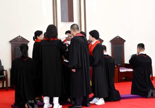 此次按立了29位牧师、31位长老。除了各市一级的教会传道人外,更有部分来自于乡镇、农村最基层的传道人。他们经过了多年的在各教堂努力工作、奉公守法的牧会和服侍的锤炼,在神学院经过了几年的学习深造,特别是在按立前进行了封闭式的集中培训,按照程序经过了考核,成为了合乎神心意、合乎信仰的传道人,这对于加强辽宁省基层教会,特别是对于乡村教会的牧养和圣洗礼、圣餐礼等圣工有着深远的重要意义。