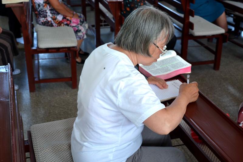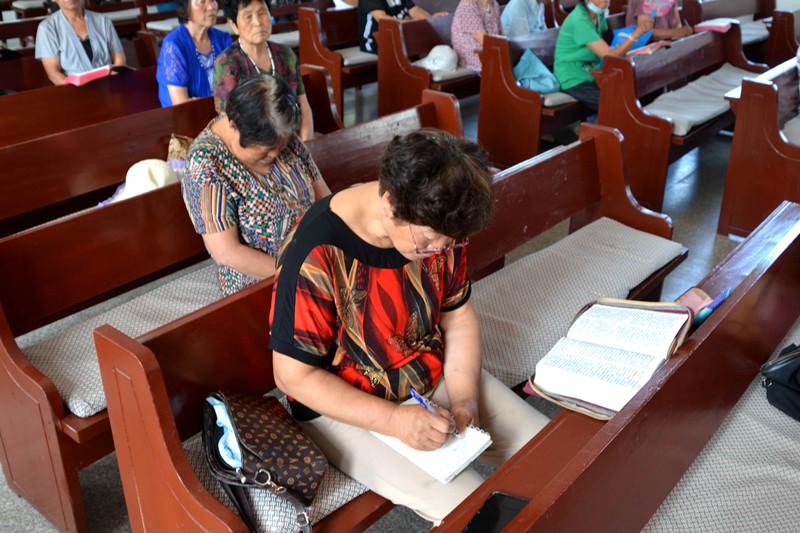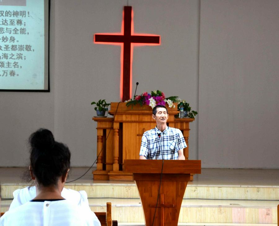 主日的恩典堂,国旗迎风飘扬,赞美之声洪亮。在提前来到的、持续的高温中,弟兄姊妹按照防疫要求进入圣殿聚会,在那里随着领诗的姊妹高歌颂赞。母丽娜长老带领会众读经,以《主啊,带我走出罪恶的所多玛》为题为主证道。长老的证道虽然没有高深的神学理论,却是充满圣灵的启示,在证道中结合经文、结合乡村的实际和见证,启发会众反省自己、儆醒自己,跟主走出内心的“所多玛”、“蛾摩拉”,远离罪恶、手洁心清,爱国爱教、荣神益人,做主喜悦的信徒,受到会众的热烈欢迎。