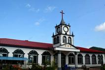 在教堂正门,映入眼前的是五星红旗高高飘扬,“神爱世人”的大字特别醒目,这是一座具有乡镇教会特点的教堂:占地面积2838平方米,宽敞的两层院落、干净整洁,圣殿上十字架耸立,主堂是中国典型的大屋顶式建筑,近千平方米。