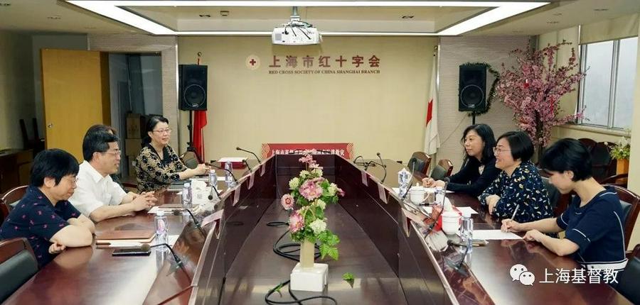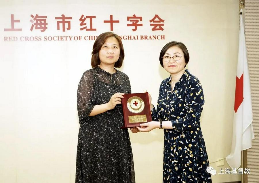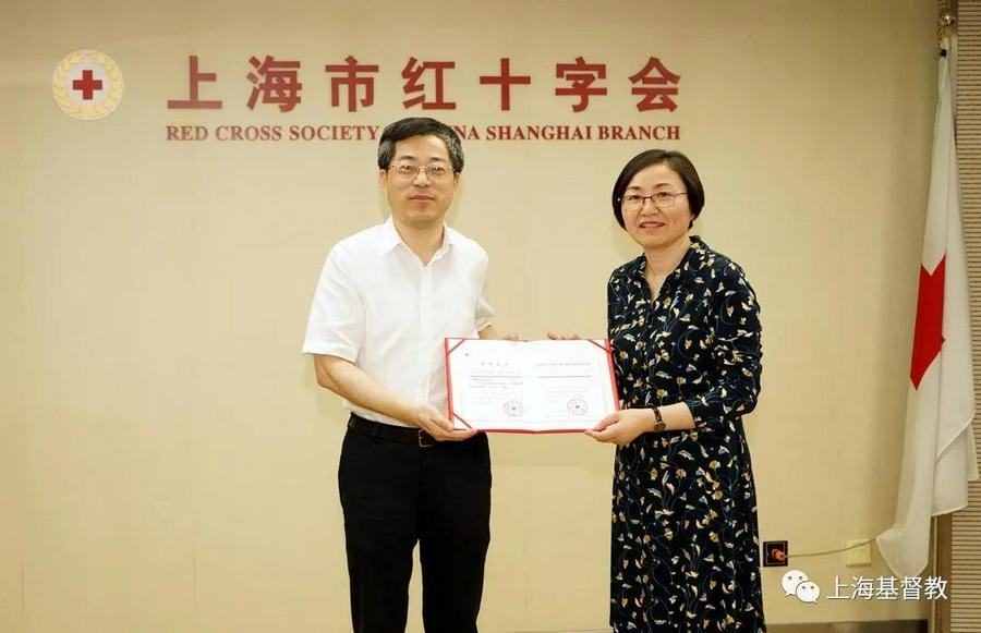 2021年7月27日上午,台风“烟花”还未过去。上海市基督教三自爱国运动委员会主席徐玉兰牧师一行冒着大雨来到上海市红十字会,代表上海市基督教两会向上海市红十字会捐赠200万元,用于河南抗洪救灾。上海市红十字会党组书记、常务副会长张浩亮,上海市红十字会副会长陈昕,上海市红十字会二级巡视员、志愿服务部部长滕桂香,上海市红十字会赈灾救护部部长张瑾代表上海市红十字会接受捐款,并向上海市基督教两会颁发捐赠证书和证章。