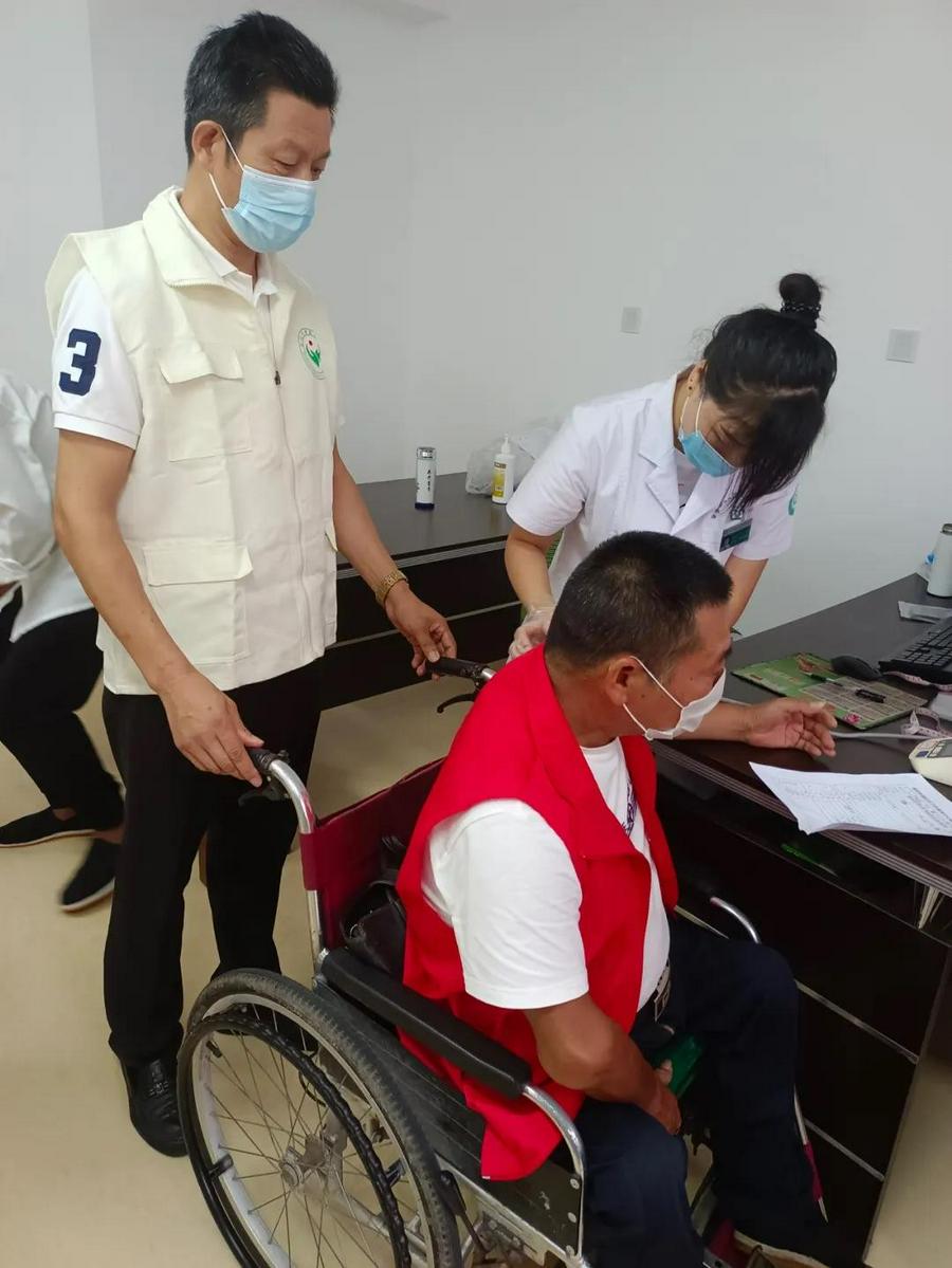 2021年8月20日早上,台州市博爱者协会副会长孔爱卿顾不上吃早餐,驾驶自家车带上志愿者来到椒江区章安街道卫生院,帮助章安街道残疾人之家的残疾朋友进行身体检查公益活动。