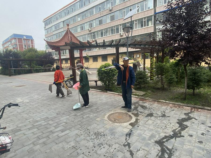 白城市瑞光北街基督教堂孙丽长老和白城市基督教两会秘书长王文玲及120位信徒一起带着水桶、拖布、钢丝刷、抹布等清扫工具来到白城市明仁社区开展志愿服务活动。