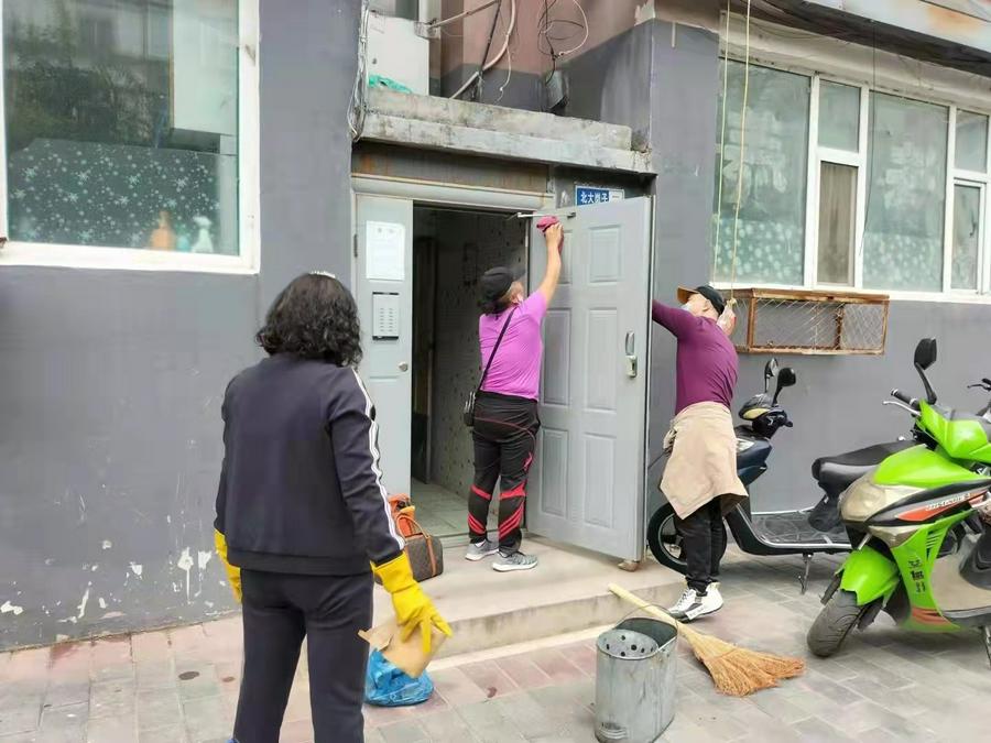 志愿者们用一天的时间,清理楼道内小广告、垃圾等杂物、清扫楼梯和走廊的灰尘、擦拭玻璃、楼梯扶手等,小区是四十多年的老楼,结构老、楼道陈旧,墙上贴的小广告很难清理,通过大家的努力,小区20多栋楼被打扫的干干净净,面貌焕然一新。