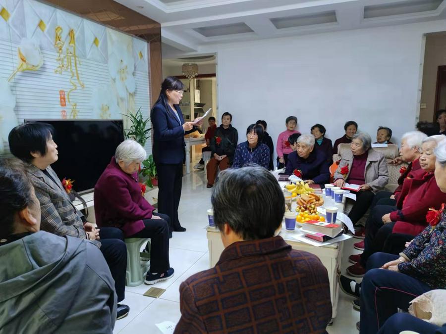年年重阳花相似,感恩又迎敬老节。10月11日下午,位于山西临汾市尧都区西南片的御景水城基督教聚会活动点里喜气洋洋,洋溢着欢乐祥和的气氛。桌上摆满了各色糕点、水果,来自西南片区所属八个聚会点的二十余位精神矍铄白发苍苍的老人端坐在沙发上,他们胸佩红花,映衬着一张张饱经沧桑的脸庞。一旁接待的同工热情端茶倒水,嘘寒问暖,抒发因着疫情停止礼拜后久别重逢的喜悦。这是在该片区举办的重阳敬老节感恩崇拜活动见到的暖心一幕。