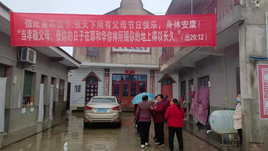 这一天上午,虽然寒风习习,雨丝飘舞,晓光教会的院子,还是被悬挂在主堂前东西厦房之间巨大横幅点明了温馨的敬老节日主题。红底白字的横幅上书:值此重阳佳节:祝天下所有父母节日快乐,身体安康!“当孝敬父母,使你的日子在耶和华你神所赐你的地上得以长久。”(出20:12)