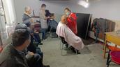 证道结束后,开始了第三项活动。教会提前邀请的四名专业理发师粉墨登场,她们在教会的东西厦房内为老人开展理发活动。老人们乐呵呵依次有序的排队理发,享受着平日不常有的免费服务。屋外风吹雨飘寒气逼人,屋内温暖如春笑声连连。理发师展示着自己的才华手艺,让老人们理完发个个返老还童年轻好几岁。