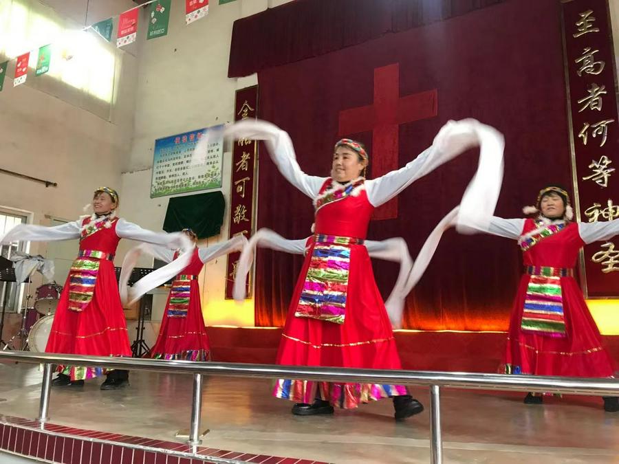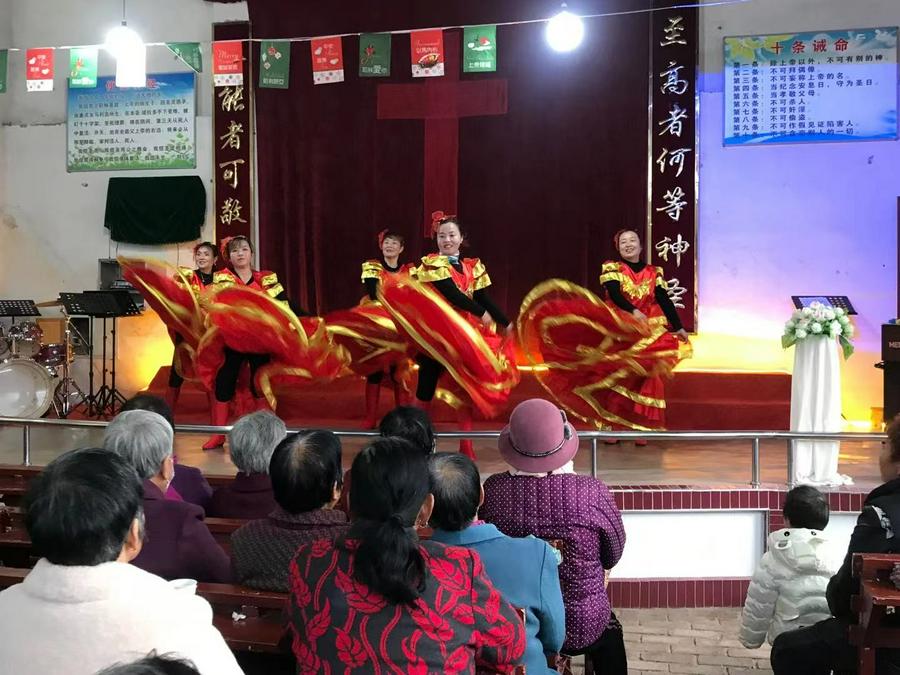 吃完午饭,在13:30,由教会诗班姊妹们准备的七个文艺节目开演。节目内容丰富,形式多样。姊妹们的精彩表演,赢得了老人们热烈掌声的称赞。特别值得一提的是《欢聚一堂》《尽情赞美》《草原儿女为主歌唱》三个舞蹈节目,深受在场老人们的喜爱和欢迎,老人们的掌声连着响起一波又一波。整个活动直到14:30才结束,教会还为参加活动的每位老人们送上了一份重阳节祝福礼物。