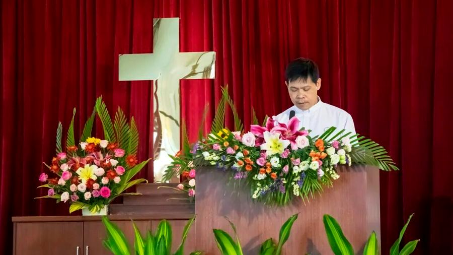 台山市基督教协会会长何越胜牧师主持庆典活动。广东省基督教三自爱国会主席樊宏恩牧师应邀在感恩崇拜中证道。