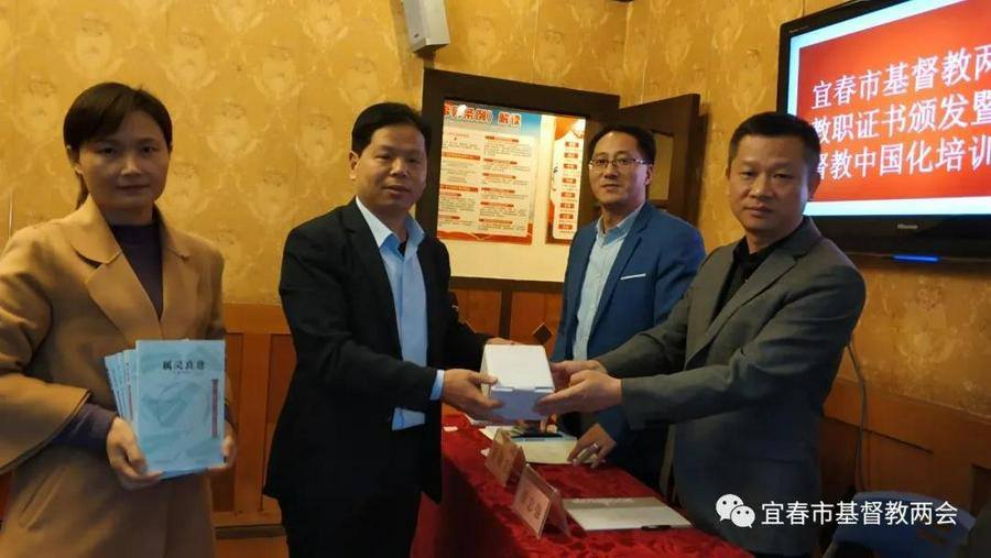 2021年10月29日下午,宜春市基督教两会颁发教职人员证书暨基督教中国化培训班在宜春市耶稣堂开班,宜春市辖各县(市、区)基督教团体、重点场所负责人共三十多人参加培训,江西省基督教协会副会长兼总干事林观福牧师、宜春市市委统战部副部长章志强、调研员李杰应邀出席并在主席台就坐,宜春市基督教三自爱国委员会主席、基督教协会会长易载忠牧师主持开班仪式。