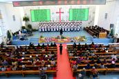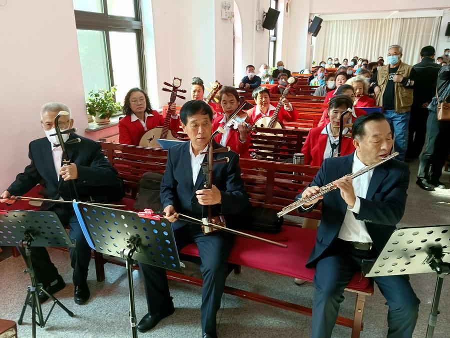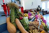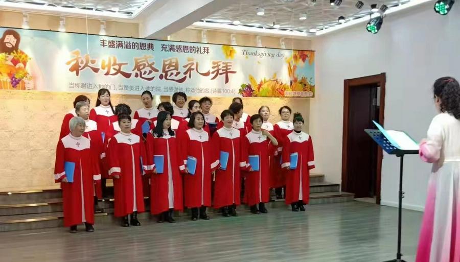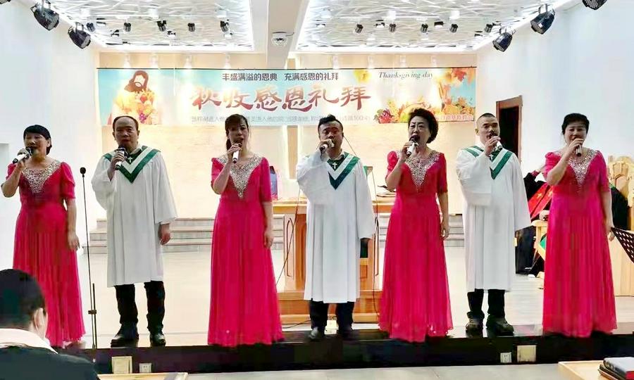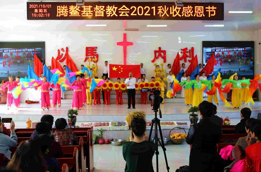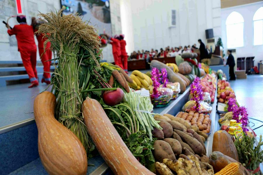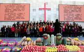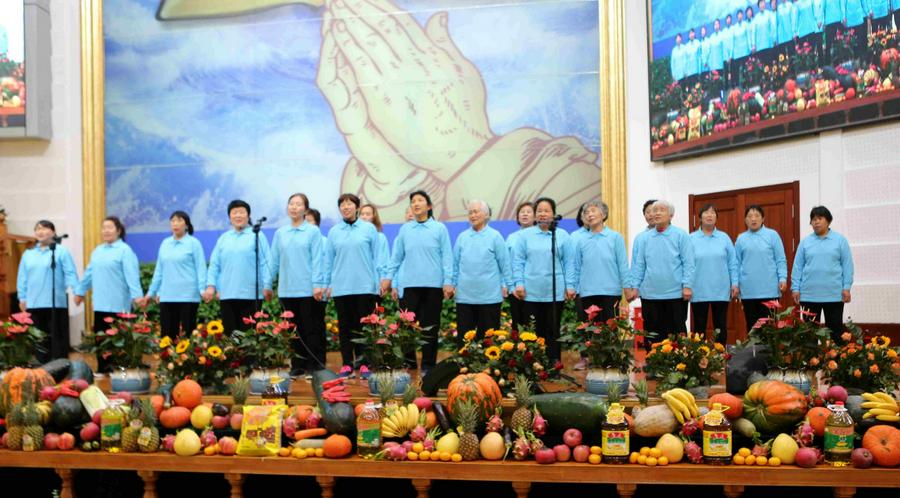在东北教会,有欢庆秋收感恩节的传统,信徒将秋收的农作物奉献到教会,大家一起载歌载舞向神感恩。