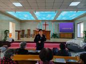 10月27日上午,吉林省延边州敦化市黄泥河镇北海基督教堂特邀请辖区内的森林公安局新兴派出所民警,到教堂为信徒开展反诈骗培训,共有130余位信徒参加了培训。