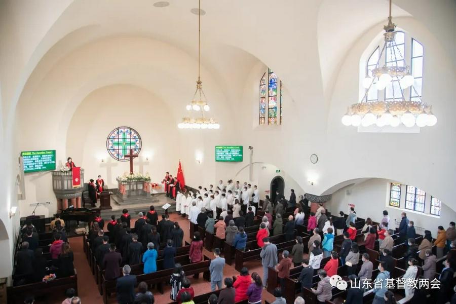 11月21日,山东省基督教两会在青岛江苏路教堂举行按立圣职典礼,来自青岛、日照的14位同工被按立圣职,教会众位弟兄姊妹共同见证了这一圣事。