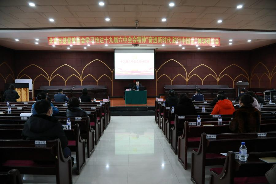 11月30日上午,长春市基督教两会在西五马路基督教堂举办十九届六中全会精神专题学习暨“奋进新时代 践行中国化”神学研讨会。市基督教两会常委以上人员、市“基督教中国化”宣讲团成员和市区内牧师、长老、教士共100余人参加。