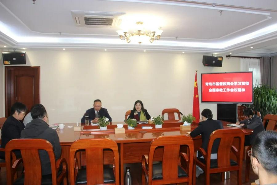 12月3日至4日,全国宗教工作会议在北京胜利召开。12月9日上午,山东省青岛市基督教两会组织全体教牧人员,认真贯彻会议精神,学习领会习近平总书记的重要讲话。